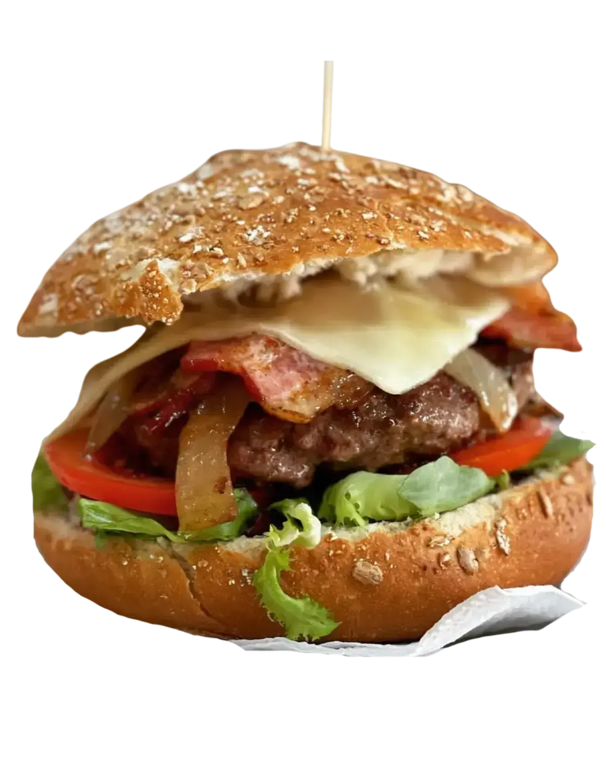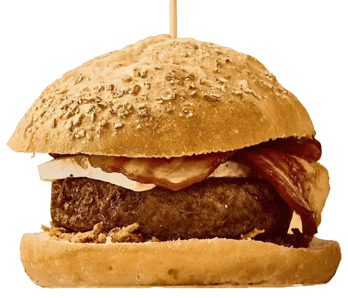 200GR BURGUER BUEY ANGUS, CEBOLLA CRUJIENTE, CON QUESO BRIE, BEICON Y PATATAS RUSTIK