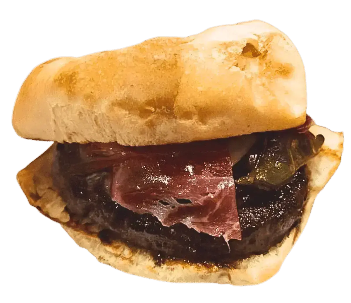 200GR DE HAMBURGUESA DE VACA GALLEGA, JAMÓN IBÉRICO, PIMIENTO VERDE, CEBOLLA, QUESO Y PATATAS RUSTIK